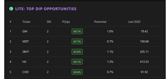 | Probability P(Up) | ✅ | ✅ | ✅ | ✅ | ✅ |